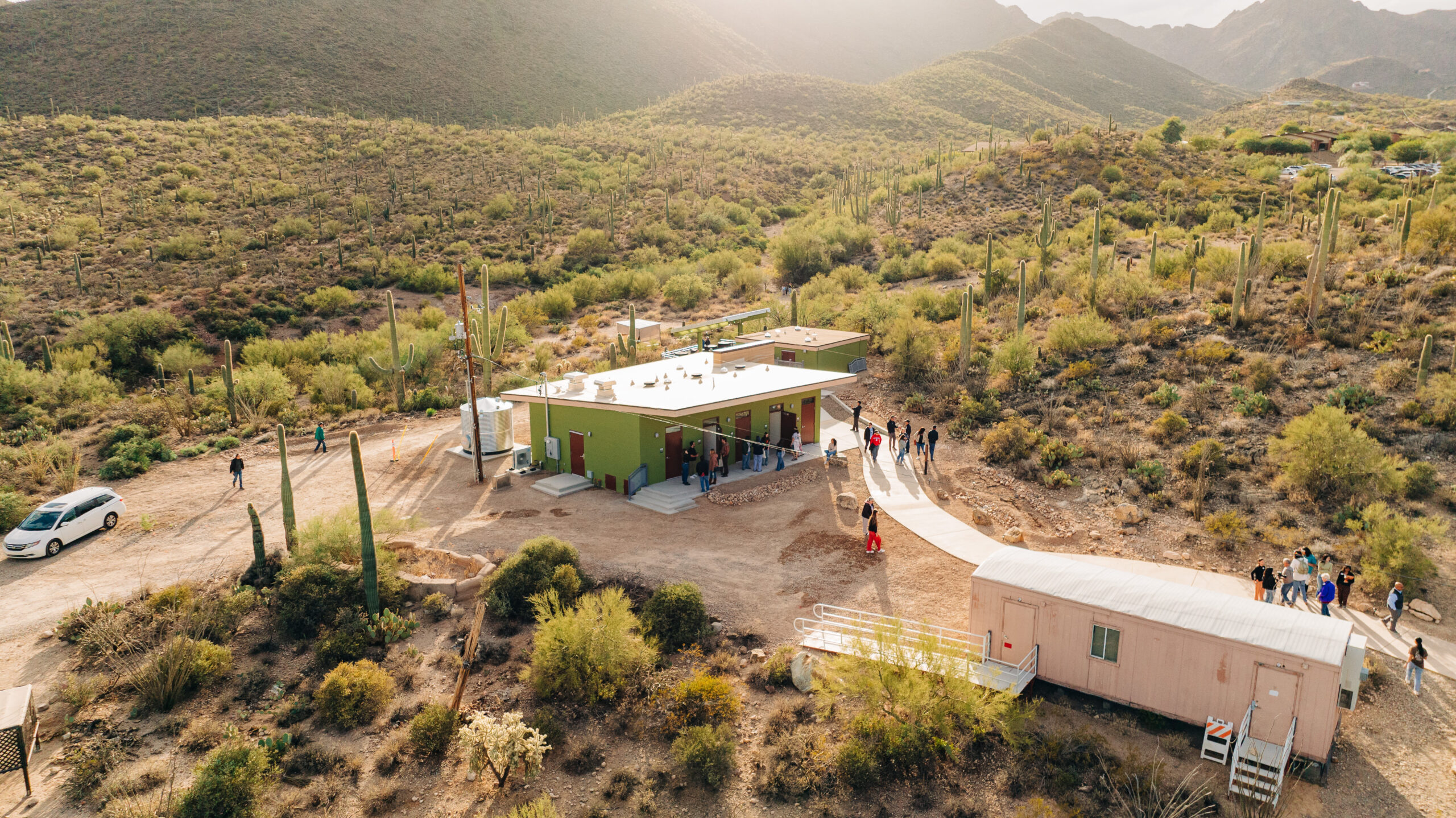 The renovation included the construction of a new building with composting toilets and waterless urinals, while the existing building were renovated into a shower house. The project also includes other sustainable features, such as new solar panels, outdoor classroom space, greywater systems for shower wastewater and 23,213 gallons of rainwater harvesting to grow shade trees and other natural vegetation nearby.