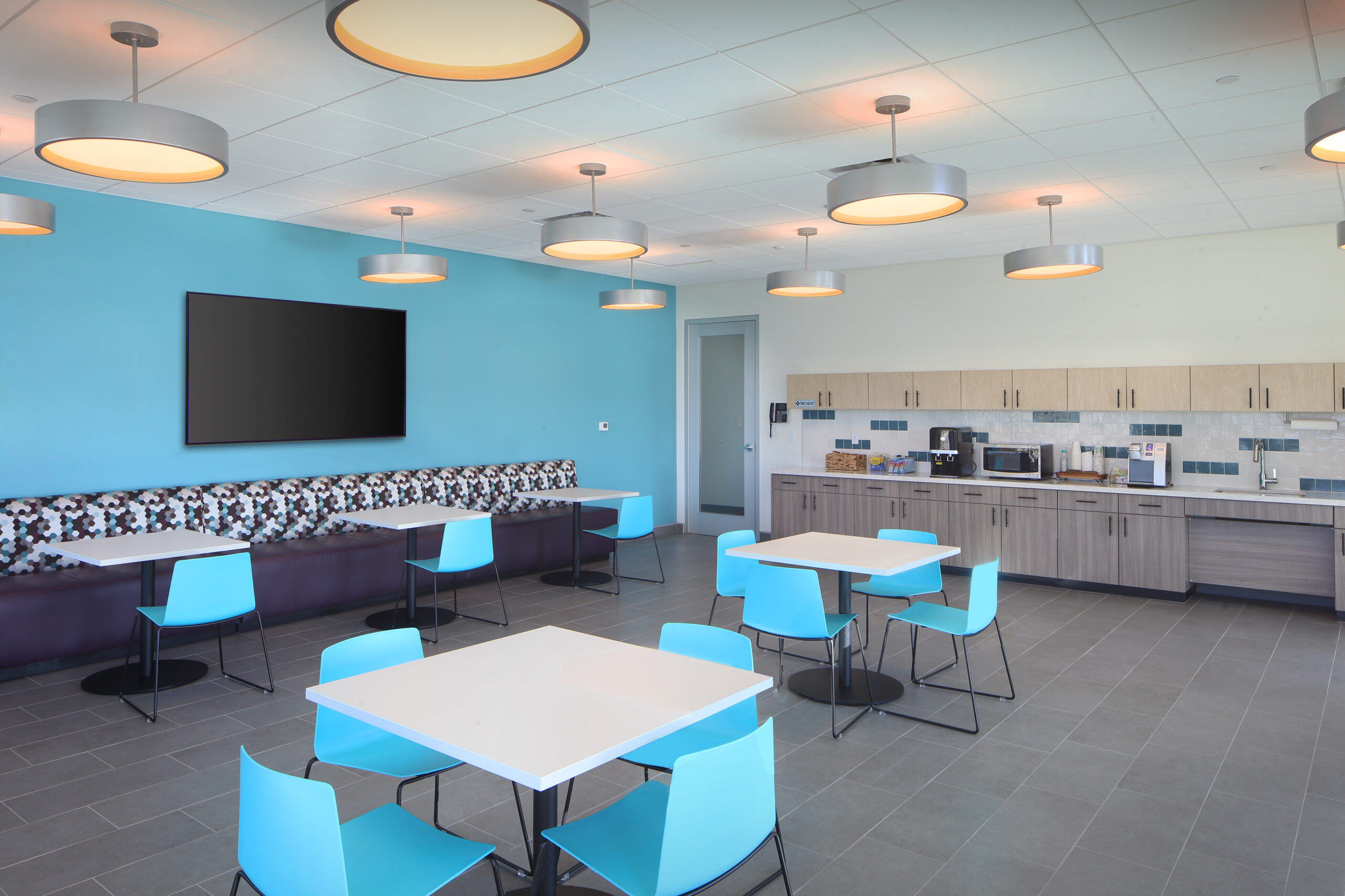 Located at the southeast corner of Ellsworth and Chandler Heights, the new church will occupy a 16-acre site with a 32,866 SF main building. It will feature a commercial-grade coffee bar, green room, daycare, classrooms, restrooms, and a central worship room with seating for 1,060, a platform for performances, and advanced sound and lighting systems. The outdoor spaces are equally impressive, with solar canopies providing 12,902 SF of shaded seating and play areas, a 719 SF outdoor kitchen, and high-end courtyard finishes. CCV also set aside 2.81 acres for athletic fields and sports courts for the CCV Stars youth program, complete with stadium lighting and natural grass. A multi-use walking trail connects the fields to the main building.